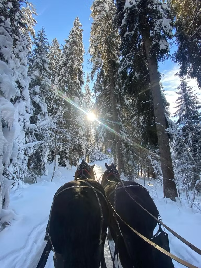 Im Sommer kann man zuzüglich für besondere Anlässe meinen Antiken Landauer dazu mieten und im Winter begleitet unser Schlitten die Fahrt durch den Wald.